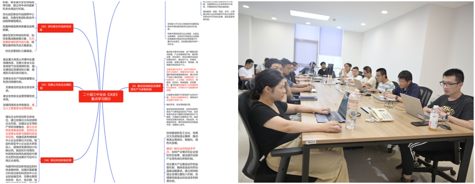 第六黨支部通過腦圖重點學習了《中共中央關于進一步全面深化改革、推進中國式現代化的決定》。支部同志們篩選與業務工作緊密相關的8個章節,結合學習腦圖重點學習了《決定》,深刻領會了《決定》是當的歷史上又一次綱領性文件,具有劃時代的意義。黨員同志們還學習了國有企業在落實《決定》過程中應遵循的重大原則。通過此番學習,全體黨員對《決定》的內容精髓及其深遠意義有了更為透徹的理解與把握。