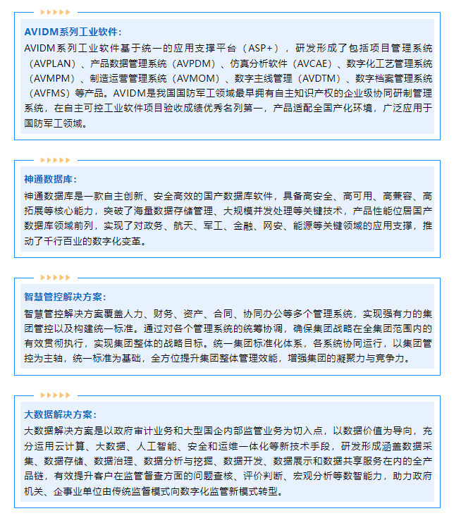 神軟公司作為集團公司信息化建設的重要支撐單位,在本次參展中,集中亮相了AVIDM系列工業軟件、神通數據庫、智慧管控系統及大數據服務等核心產品與技術服務,展示了神軟公司作為國產軟件排頭兵在自主創新和技術突破上的潛力和成績,展現了神軟公司在助力航天信息化建設中的實力。展會現場吸引了眾多嘉賓駐足。